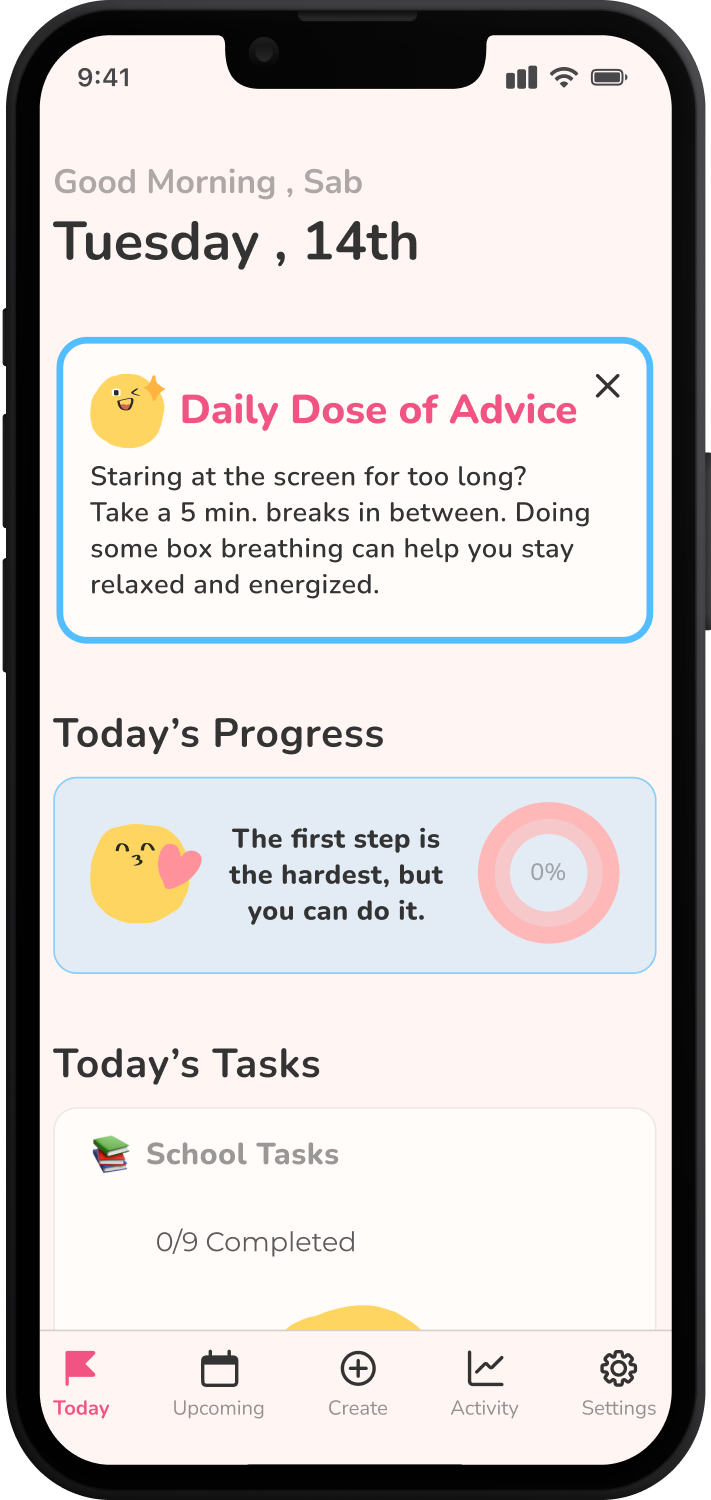 In 13 weeks I was able to research and design an app with an MVP that help met users’ needs by encouraging students to start their work sooner rather than later.