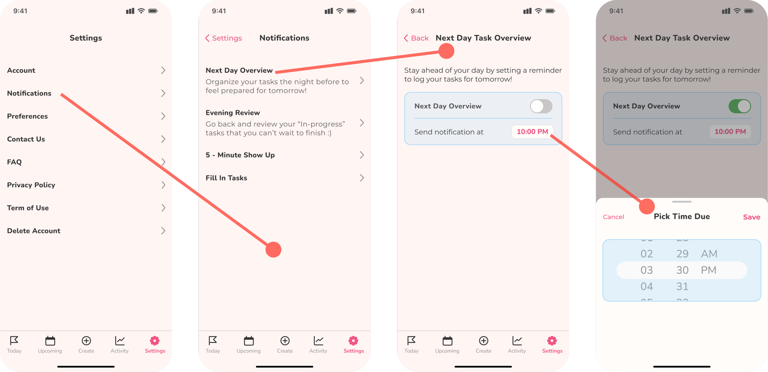 Help users get more accomplished in a day with set timers, assisting them to move on to the next task