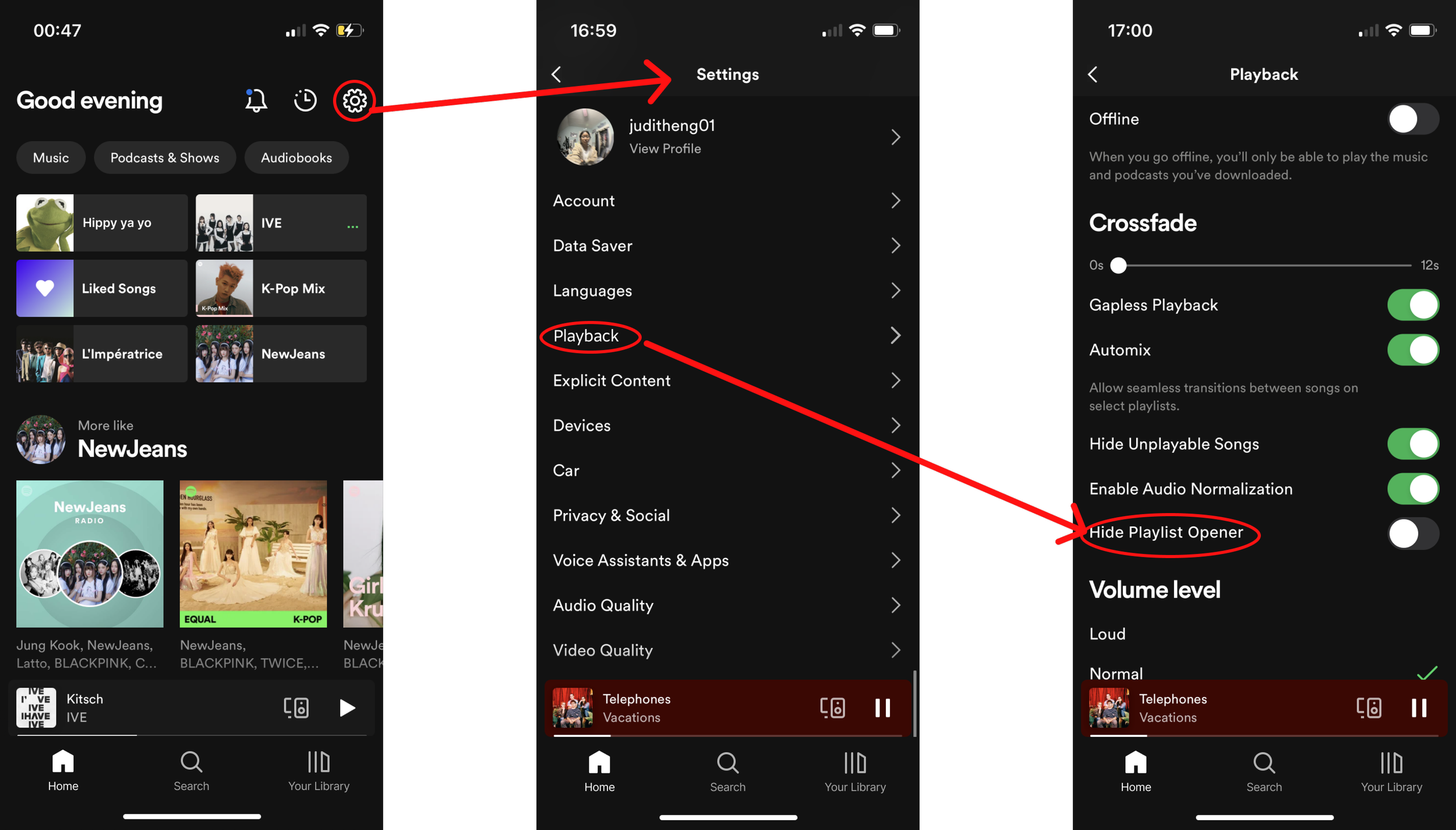 It didn’t make sense to go to settings, so let’s follow Spotify’s design principles by allowing users to turn off the feature in the playlist area.